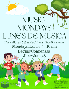 Littles (5 & under) and their parents or caregivers are invited to join us for Music Mondays, 10 am upstairs in the Children’s Department! Program will resume on June 8th!