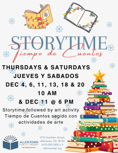 Bring your favorite stuffed animal pal for an evening Story Time, Thursday, December 11, upstairs in the Children’s Area. For children of all ages and their grown-ups.