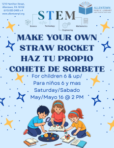 Saturday, May 16th @ 2 PM: Make your own Straw Rocket
